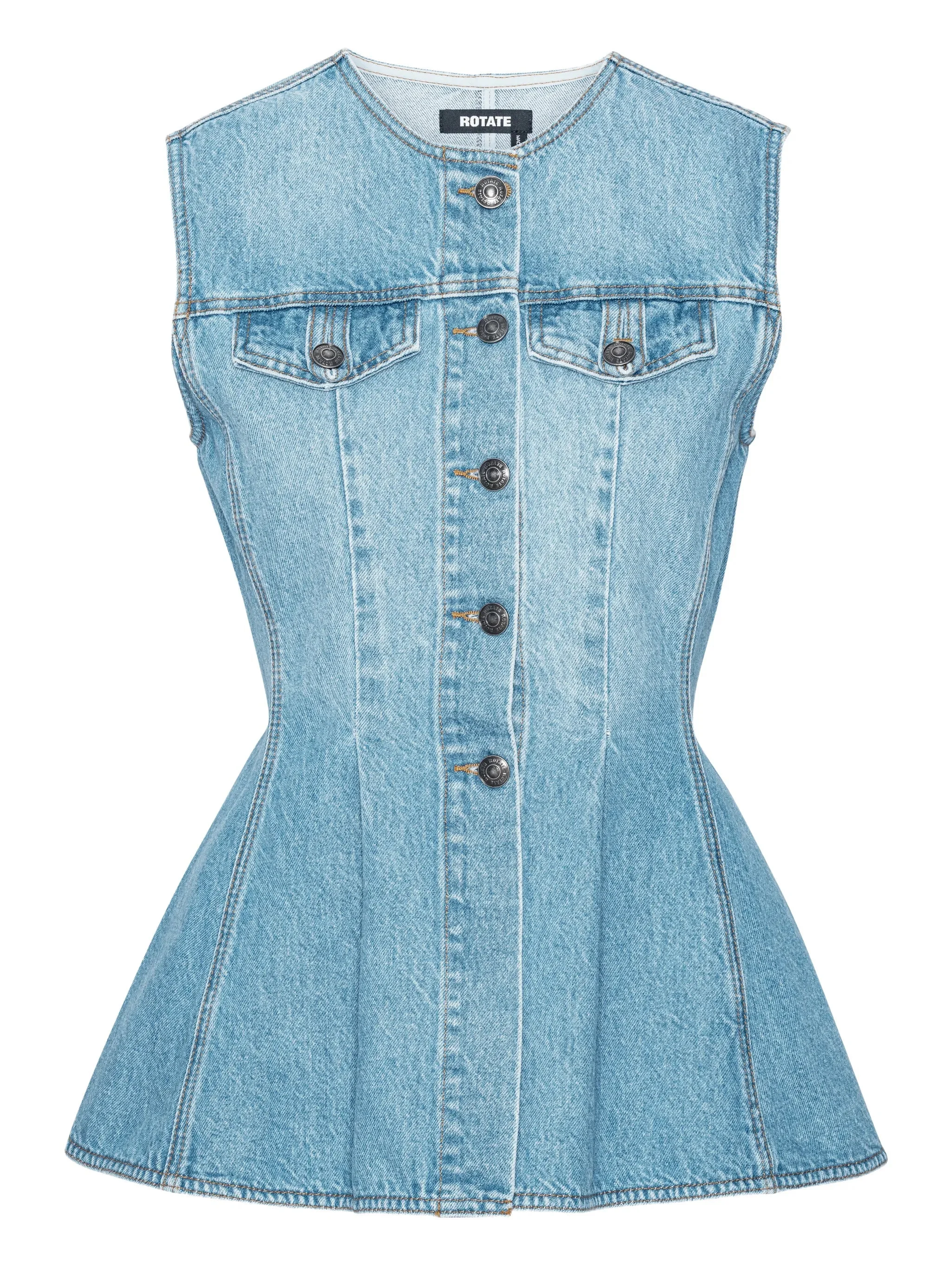 light blue flap pockets front button-fastening sleeveless round neck flared hem - Color: BLUE - Made in: Turkey - Designer Style ID: 1151671321 FLARED DEN 1321 Composition and care Organic Cotton: 100.0%