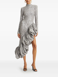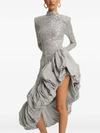 grey sequin embellishment ruffled asymmetric hem mock neck long sleeves - Color: GREY - Made in: China - Designer Style ID: 114315039 SEQUIN ASY 039 Composition and care Lining Composition Polyester: 88.0%, Outer Composition Recycled Polyester: 95.0%, Outer Composition Sequin: 100.0%, Outer Composition Elastane: 5.0%, Lining Composition Elastane: 12.0%