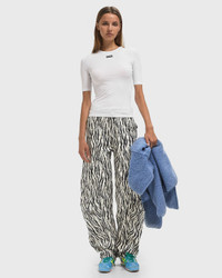 The ROTATE Birger Christensen Printed Twill Cargo Pants combine utility chic with a modern animal print. These trousers have a mid-rise waistband with belt loops and a button fastening at the front. The legs have a straight cut and the hems are neatly finished. Classic pockets complete the design. - Button and zipper fastening - Belt loops - Pockets at the front and back This item is partly made of certified, recycled and sustainable materials, reducing the global amount of waste and conserving primary raw materials. Discover a wide range of sustainable items now at BSTN! Article Number: 114339858 Gender: Women Color: EGRET COMB. Material: 100% Cotton