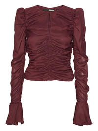 ruched blouse Highlights - Bordeaux - Chiffon fabric - Keyhole detail - Long sleeves - Ruched detail - Bell cuffs Imported Composition Outer: Recycled Polyester 100% Lining: Recycled Polyester 95%, Elastane 5% Washing instructions Read Manufacturer Guidelines