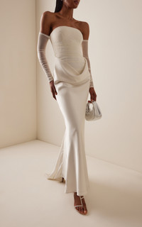 Ruched Tulle and Satin Maxi Dress white
