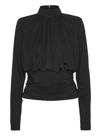 ruched high-neck top Highlights - Black - High neck - Ruched detailing - Long sleeves - Concealed zip fastening Imported Composition Lining: Polyester 95%, Elastane 5% Outer: Recycled Polyester 100% Washing instructions Read Manufacturer Guidelines
