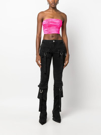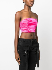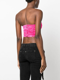 ruched satin cropped top Highlights - Fluorescent pink - Recycled polyester blend - Satin finish - Ruched bodice - Strapless - Rear zip fastening - Cropped - Straight hem Imported Composition Lining: Polyester 92%, Spandex/Elastane 8% Outer: Recycled Polyester 57%, Polyester 43% SIZE & FIT Model measurements Height 5 ft 10 in(1.77 m) Bust/Chest 34.64 in(88 cm) Hips 35.43 in(90 cm) Waist 24.8 in(63 cm) FittingInformation Designed for a close fit throughout Cropped in length Made from a midweight non-stretch fabric This piece fits true to size – take your usual size Washing instructions Hand Wash