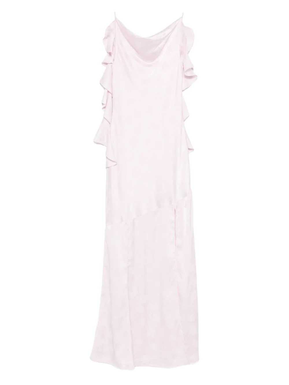 ruffled scoop neck dress Highlights - Orchid ice - Thin straps - Scoop neck - Waterfall detail - Maxi length - Side slit Imported Composition Outer: Polyester 97%, Spandex/Elastane 3% Lining: Polyester 92%, Elastane 8% Washing instructions Hand Wash