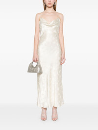 satin midi dress Highlights - Light beige - Concealed side zip fastening - Cowl neck - Floral applique - Sleeveless Imported Composition Lining: Polyamide 95%, Elastane 5% Outer: Silk 100% SIZE & FIT Model measurements Height 5 ft 9 in(1.75 m) Bust/Chest 31.88 in(81 cm) Hips 34.64 in(88 cm) Waist 24.01 in(61 cm) FittingInformation Designed for a slim fit that sits just away from the body offering a close yet comfortable fit Made from a midweight fabric Washing instructions Hand Wash