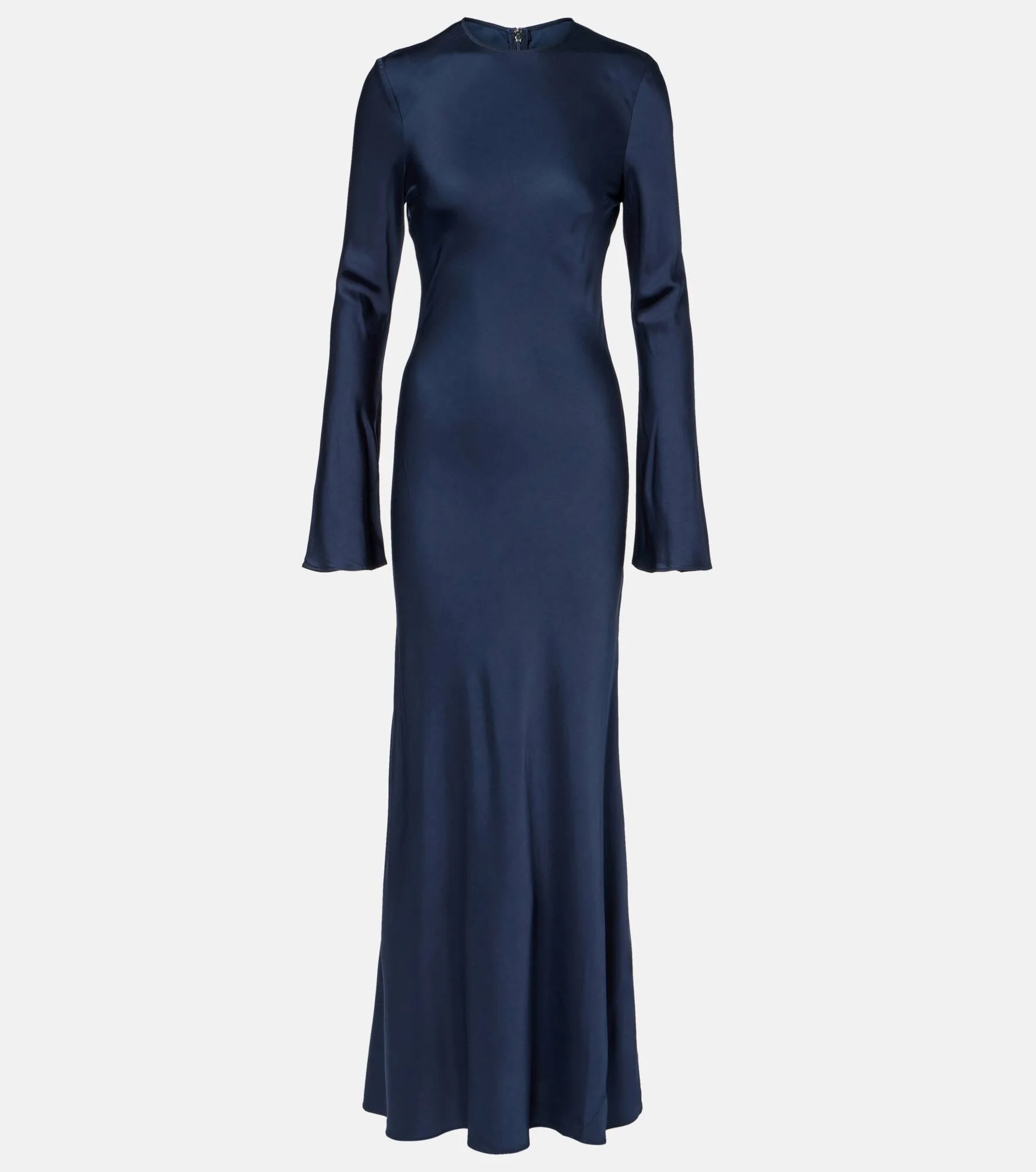 Fill the gaps in your going-out wardrobe with unique and glamorous styles from Rotate. This gown is crafted from fluid satin and features oversized long sleeves and a floor-length skirt. Product Details - Material: 100% viscose - Care instructions: dry clean - Made in China - Designer color name: Sky Captain - Item color: blue - Hardware color: silver - Closure: concealed zipped back, hook-fastening back - Item number: P01113119 Size & Fit - True to size - Fitted - Non-stretchy fabric - The model seen in the picture is 178cm-5'10" and wearing a size DE 34