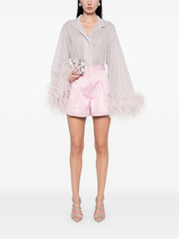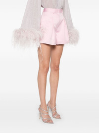 satin high-waisted shorts Highlights - Light pink - Concealed front button, hook and zip fastening - Two side slit pockets - Belt loops - Inverted pleat Imported Composition Recycled Polyester 100% SIZE & FIT Model measurements Height 5 ft 10 in(1.78 m) Bust/Chest 33.46 in(85 cm) Hips 36.22 in(92 cm) Waist 23.22 in(59 cm) FittingInformation Designed for a loose fit, offering comfort and movement when worn Made from a lightweight non-stretch fabric Washing instructions Machine Wash