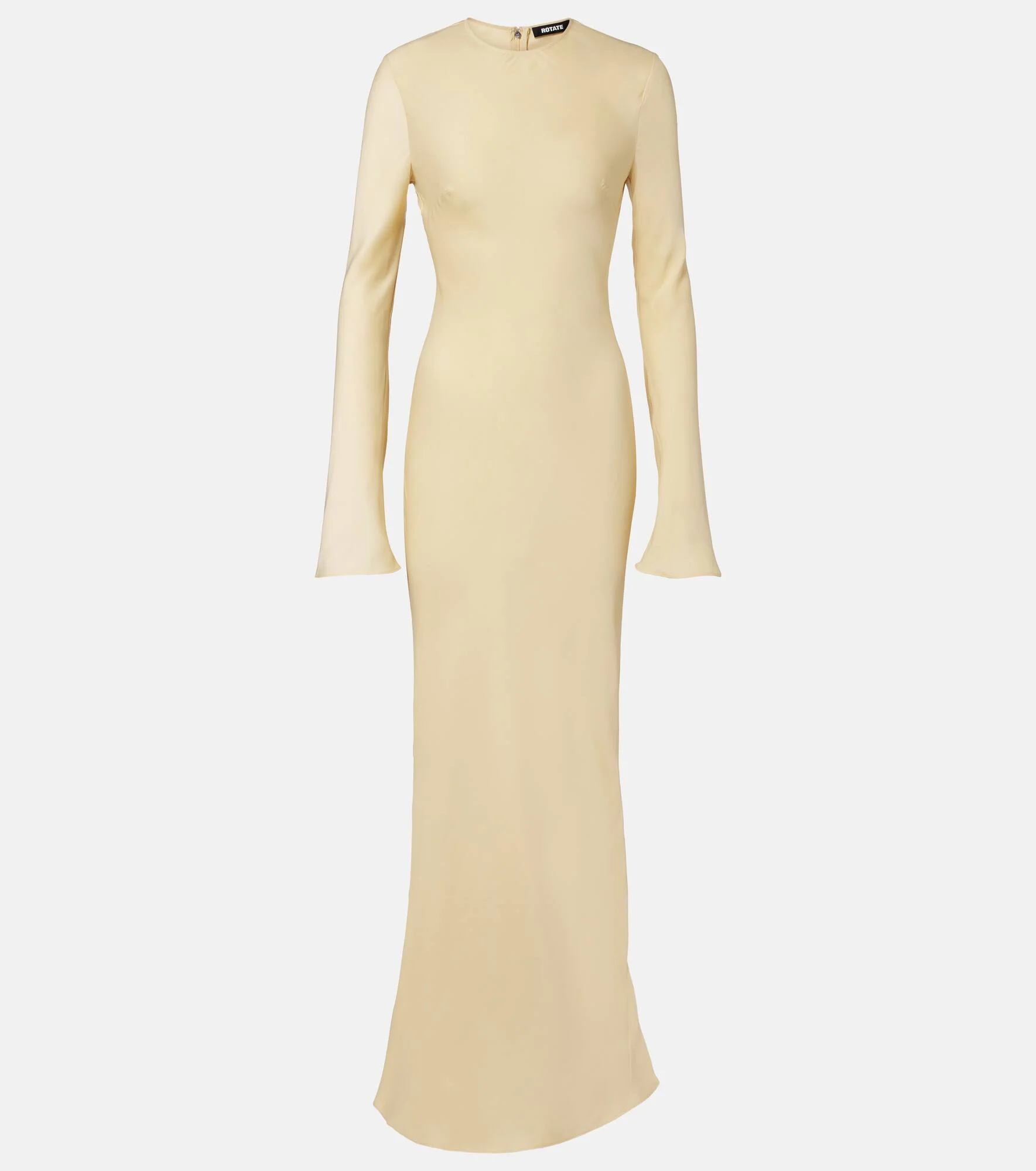 Fill the gaps in your going-out wardrobe with unique and glamorous styles from Rotate. This maxi dress is a long-sleeved style carefully crafted from satin and features a concealed zipper fastening at the back. Product Details - Material: 100% polyester - Care instructions: hand wash - Made in China - Color: yellow - Designer color name: Italian Straw - Closure: concealed zipped back - Item number: P01161366 Size & Fit - True to size - Cinched waist - Non-stretchy fabric - The model seen in the picture is 178cm-5'10" and wearing a size DE 34