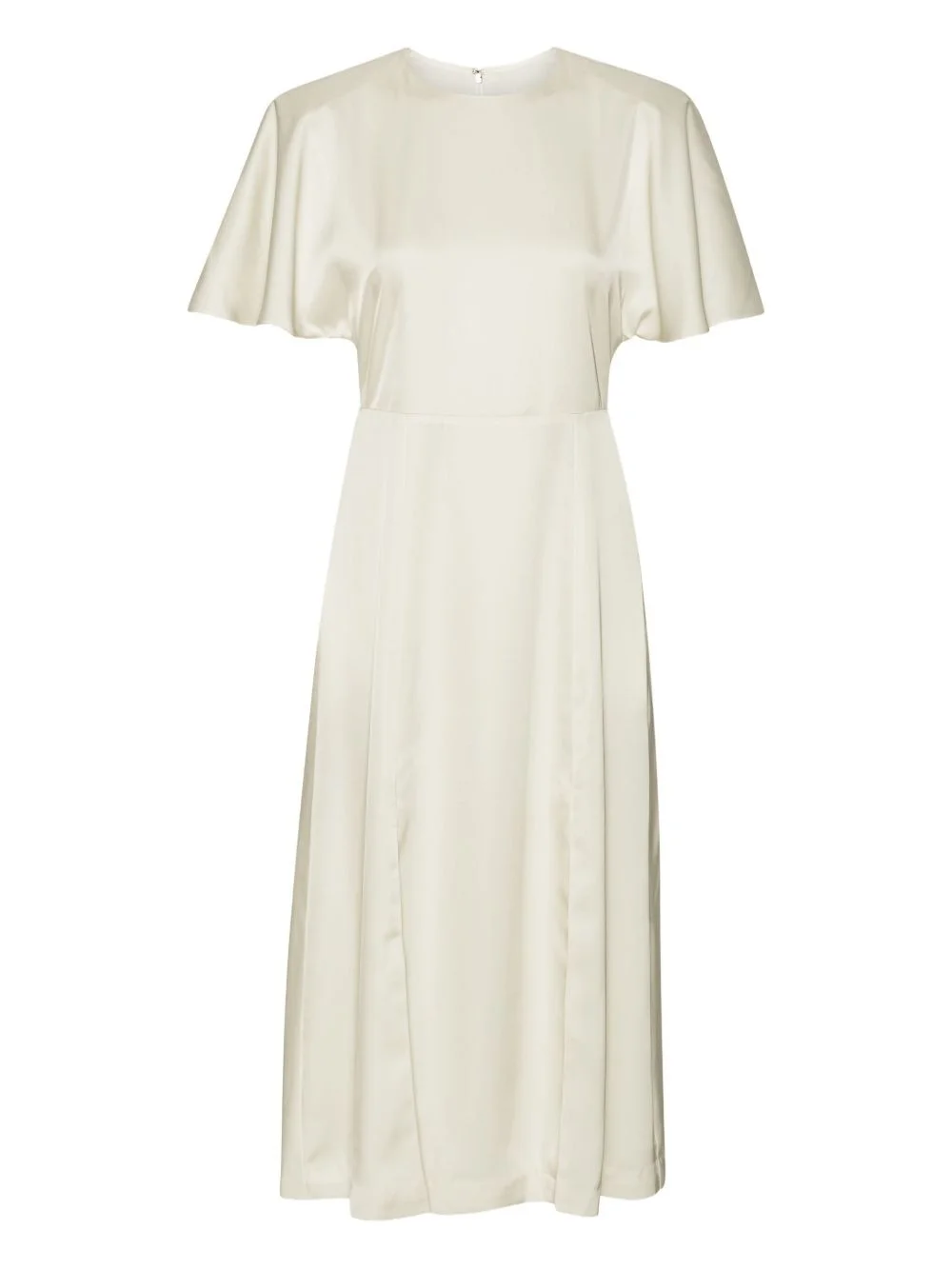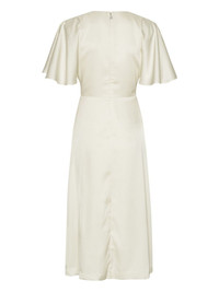 satin slit midi dress Highlights - Off-white - Flared skirt - Front slit - Round neck - Flutter sleeves Imported Composition Lining: Polyester 95%, Elastane 5% Outer: Recycled Polyester 60%, Polyester 40% Washing instructions Read Manufacturer Guidelines