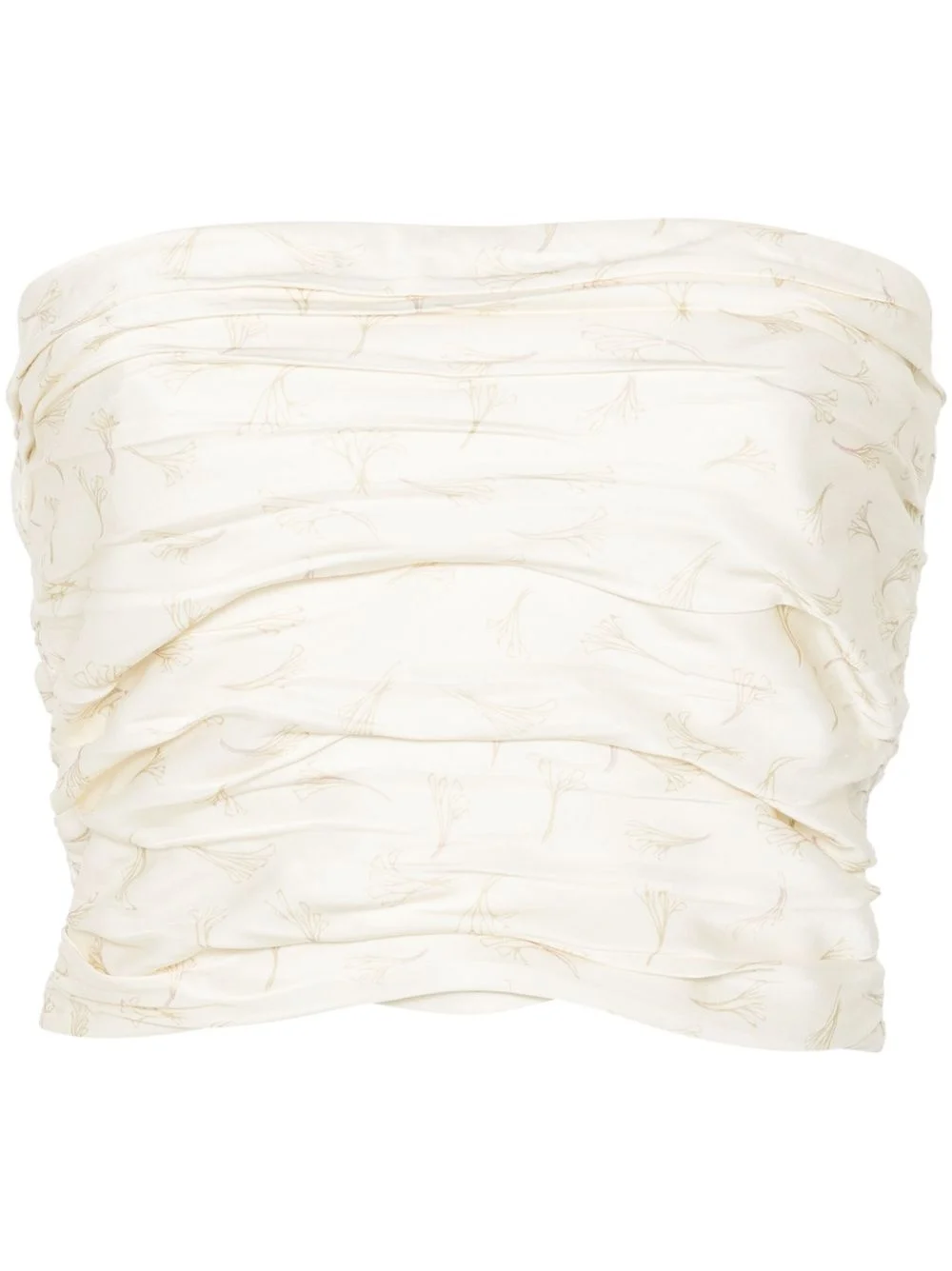 scarf-detail printed top Highlights - Light beige/ecru - Satin weave - All-over floral print - Fully draped - Detachable scarf detailing - Branded zip puller - Bandeau style - Grip tape top - Strapless - Sleeveless - Concealed rear hook and zip fastening - Cropped - Straight hem - Full lining Imported Composition Viscose 100% SIZE & FIT Model measurements Height 5 ft 9 in(1.75 m) Bust/Chest 34.64 in(88 cm) Hips 36.61 in(93 cm) Waist 26.37 in(67 cm) FittingInformation Designed for a close fit throughout Made from a midweight non-stretch fabric This piece fits true to size – take your usual size