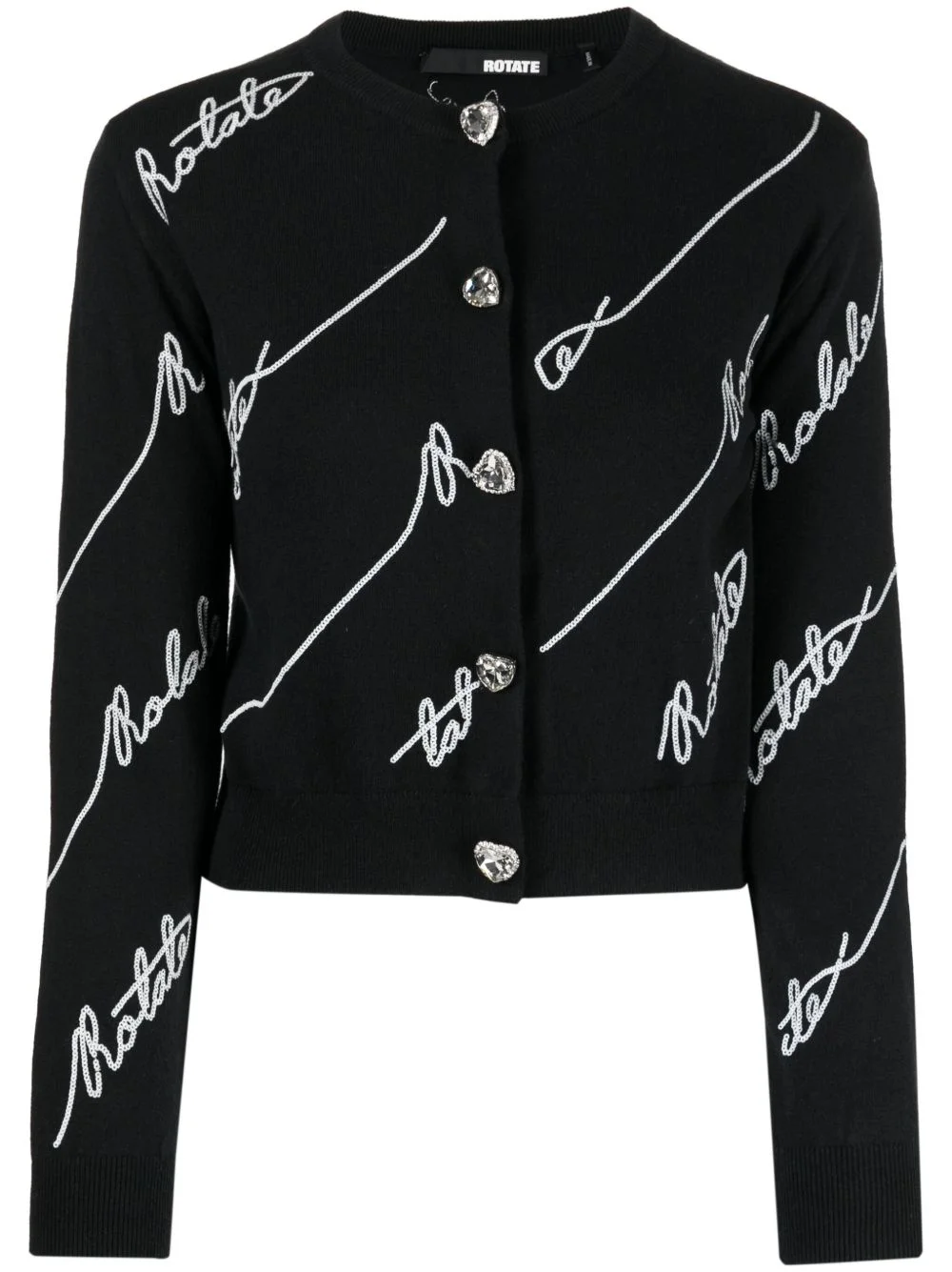sequin-embellished cardigan Highlights - Black - Cotton blend - Ribbed cuffs and hem - Sequin embellishment - Heart-shaped buttons - Crew neck - Front button fastening - Long sleeves - Straight hem Imported Composition Body: Cotton 65%, Polyamide 19%, Wool 16% Polyester 100% SIZE & FIT Model measurements Height 5 ft 9 in(1.76 m) Bust/Chest 31.1 in(79 cm) Hips 35.03 in(89 cm) Waist 24.4 in(62 cm) FittingInformation Designed for a slim fit that sits just away from the body offering a close yet comfortable fit Cropped in length Made with a midweight knit, this piece offers some stretch This piece fits true to size – take your usual size