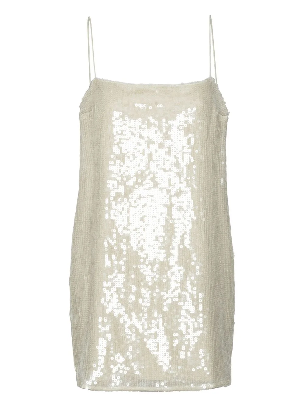 sequin-embellished mini dress Highlights - White - Sequin embellishment - Spaghetti straps - Square neck - Straight hem Imported Composition Outer: Sequin 100%, Recycled Polyester 95%, Elastane 5% Lining: Polyester 88%, Elastane 12% Washing instructions Dry Clean Only