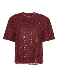 sequin-embellished top Highlights - Red - Short sleeves - Sequin embellishment - Grid pattern - Round neck Imported Composition Lining: Polyester 97%, Elastane 3% Outer: Recycled Polyester 100% Washing instructions Hand Wash