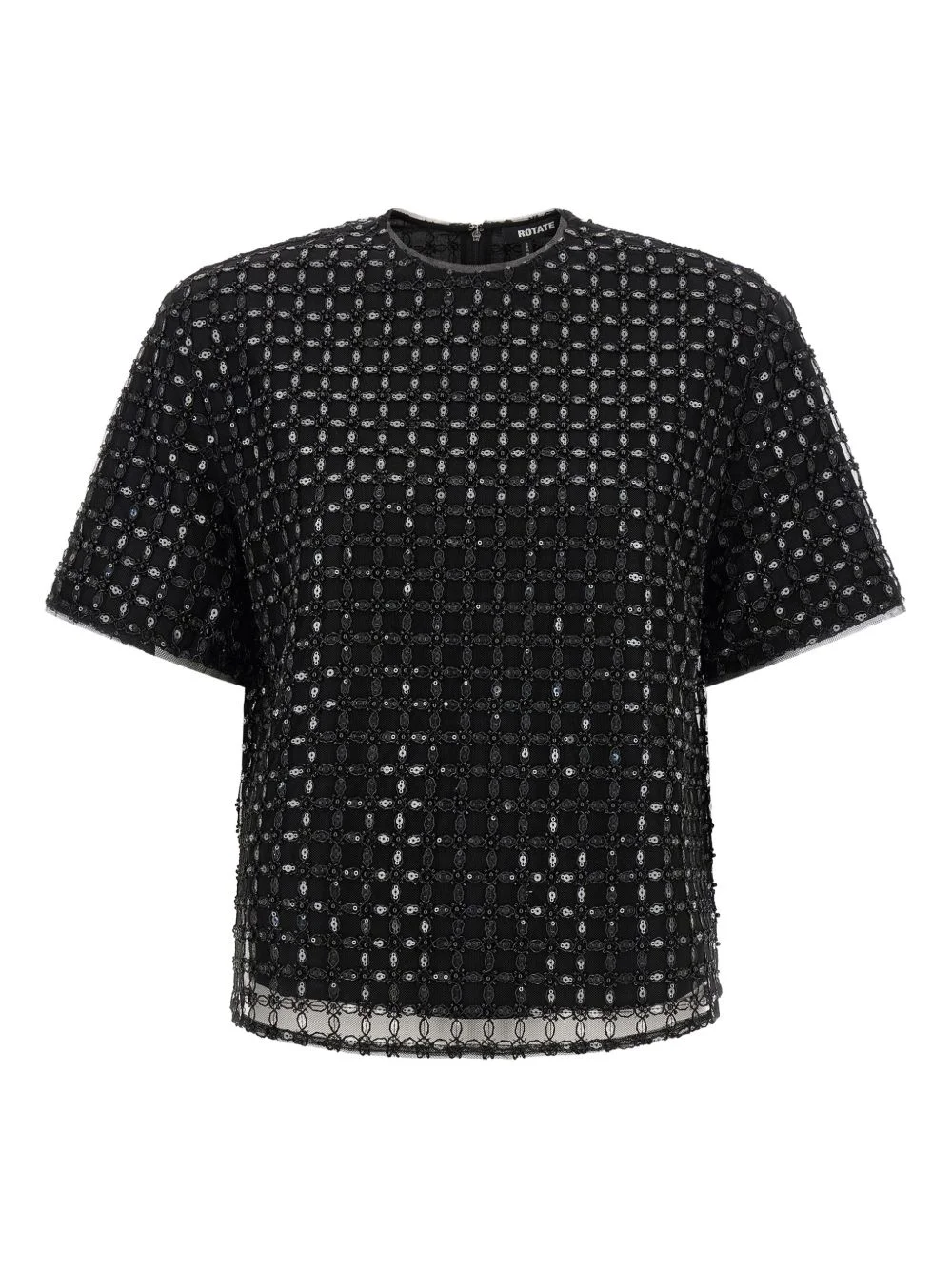 sequin-embroidered T-shirt Highlights - Black - Sequin embroidery - Tulle layer - Crew neck - Short sleeves - Zip fastening Imported Composition Body: Recycled Polyester 100% Outer: Polyester 100% Lining: Viscose 97%, Elastane 3% Washing instructions Read Manufacturer Guidelines