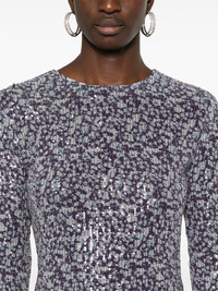 sequinned mini dress Highlights - Purple/multicolour - Recycled polyester blend - Abstract pattern print - Sequin design - Crew neck - Long sleeves - Flared cuffs - Cut-out detailing - Thigh-length - Full lining - Straight hem - Single rear button fastening Made in Italy Composition Lining: Polyester 100% Outer: Recycled Polyester 95%, Elastane 5% SIZE & FIT Model measurements Height 5 ft 10 in(1.77 m) Bust/Chest 32.28 in(82 cm) Hips 35.03 in(89 cm) Waist 25.19 in(64 cm) FittingInformation Designed for a close fit throughout Made from a midweight stretch fabric, this piece offers elasticity and flexibility when worn This piece fits true to size – take your usual size