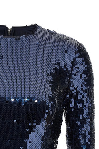 cod. 11461423182318 Sequin stretch mini dress with crewneck, back zip closure, long sleeves with flounces on the hem. Color: Blue Size & Fit: True to size fit German sizing Composition: 95% polyester, 5% elastane Made in: China