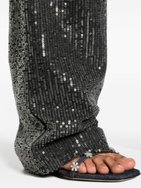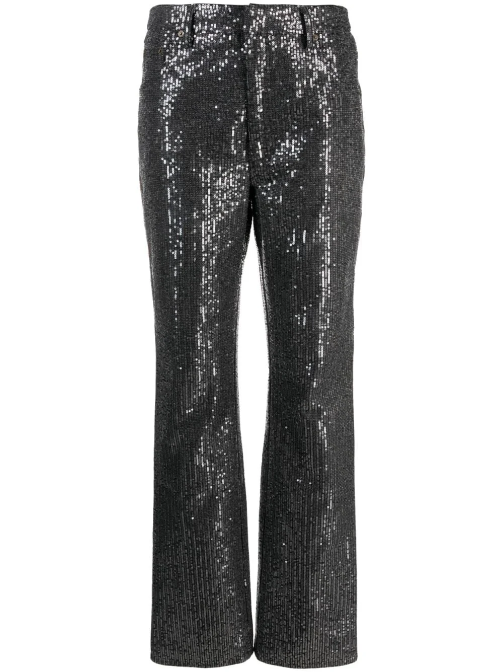 high-waisted sequin-embellished jeans Never one to shy away from the limelight, ROTATE BIRGER CHRISTENSEN channels a shimmering aesthetic with these jeans. The pair are defined by the all-over sequin embellishments that adorn the high-waisted silhouette for an undeniably striking look. Highlights - Black - Recycled polyester - Recycled cotton - Sequin design - Concealed front fastening - Belt loops - Classic five pockets Imported Composition Outer: Recycled Polyester 100%, Recycled Cotton 100% Lining: Polyester 92%, Elastane 8% SIZE & FIT Model measurements Height 5 ft 10 in(1.77 m) Bust/Chest 33.07 in(84 cm) Hips 37 in(94 cm) Waist 24.8 in(63 cm) Washing instructions Dry Clean Only