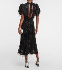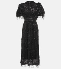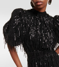 In Rotate Birger Christensen's midi dress, be the enchanting center of attention. Puff sleeves, an open back, and sparkling sequins ensure a mesmerizing presence in regular-fit elegance. Product Details - Material: 95% recycled polyester, 5% elastane - Care instructions: dry clean - Made in China - Designer color name: Black - Lining: 97% polyester, 3% elastane - Self-tie back - Item number: P00870305 Size & Fit - True to size - Oversized shoulders - Low back - Cinched waist - Mid-weight material - The model seen in the picture is 178cm-5'10" and wearing a size DT 34
