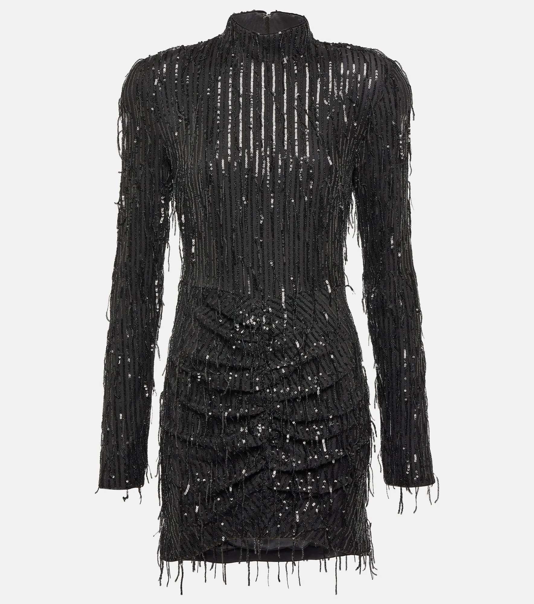 Rotate Birger Christensen's minidress promises a night to remember, combining sophistication and sparkle in a mesmerizing fashion statement. This design features sequins, front gatherings, a high neck, and shoulder pads for a stunning evening ensemble. Product Details - Material: 95% polyester, 5% elastane - Care instructions: dry clean - Made in China - Designer color name: Black - Material II: 100% polyester - Closure: invisible zipper - Item number: P00870292 Size & Fit - True to size - Oversized shoulders - Fitted - Mid-weight material - The model seen in the picture is 178cm-5'10" and wearing a size DT 34
