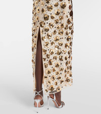 Fill the gaps in your going-out wardrobe with unique and glamorous styles from Rotate. This beige midi dress features a fitted, strapless silhouette and is embellished with allover sequins. Product Details - Material: 100% polyester - Care instructions: dry clean - Made in China - Designer color name: Brazilian Sand - Item color: beige, gold - Embroidery: 100% polyester - Lining: 100% polyester - Closure: concealed zipped back - Item number: P01118742 Size & Fit - True to size - Strapless - Fitted - Non-stretchy fabric - The model seen in the picture is 178cm-5'10" and wearing a size DE 34