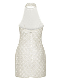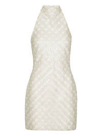 sequinned halterneck dress Highlights - White - Concealed rear zip fastening - Sleeveless - Straight hem - Thigh-length Imported Composition Lining: Polyester 100% Outer: Recycled Polyester 100% Washing instructions Read Manufacturer Guidelines