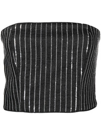 sequinned striped crop top This strapless top follows ROTATE BIRGER CHRISTENSEN's bold house codes. A clear nod to the brand's extravagant spirit, the cropped silhouette is covered with shimmering sequins across the pinstripe pattern. Highlights - Black/white - Cotton - Twill weave - Vertical stripe embroidery - Sequin embellishment - Square neck - Rear zip fastening - Strapless - Straight hem Imported Composition Outer: Cotton 100%, Recycled Polyester 100% Lining: Polyester 92%, Spandex/Elastane 8% SIZE & FIT Model measurements Height 5 ft 10 in(1.78 m) Bust/Chest 31.49 in(80 cm) Hips 37 in(94 cm) Waist 23.62 in(60 cm) FittingInformation Designed for a slim fit that sits just away from the body offering a close yet comfortable fit Cropped in length Made from a midweight fabric This piece fits true to size – take your usual size Washing instructions Dry Clean Only