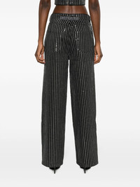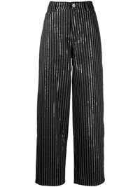 sequinned striped wide-leg jeans These wide-leg trousers obey ROTATE BIRGER CHRISTENSEN's bold house codes. A clear nod to the brand's extravagant spirit, the silhouette is covered with shimmering sequins over the pinstripe pattern. Highlights - Black/white - Cotton - Twill weave - Stretch-design - High-waisted - Wide leg - Vertical stripe embroidery - Sequin embellishment - Logo patch to the rear - Belt loops - Front button and zip fastening - Classic five pockets - Straight hem Imported Composition Outer: Cotton 100%, Recycled Polyester 100% Lining: Polyester 92%, Spandex/Elastane 8% SIZE & FIT Model measurements Height 5 ft 10 in(1.78 m) Bust/Chest 31.49 in(80 cm) Hips 37 in(94 cm) Waist 23.62 in(60 cm) FittingInformation Designed with a wide-leg cut, these trousers allow for a close fit at the waist and offer a loose and roomy fit over the leg Made from a midweight non-stretch fabric This piece fits true to size – take your usual size Washing instructions Dry Clean Only
