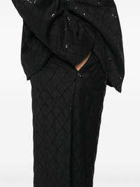 sequinned wide-leg trousers Highlights - Black - Sequin embellishment - Wide leg - Concealed front button, hook and zip fastening - Belt loops - Pleat detailing - Two diagonal pockets to the sides - Two rear welt pockets Imported Composition Outer: Recycled Polyester 44%, Viscose 41%, Wool 12%, Elastane 3% Lining: Polyester 54%, Viscose 46% SIZE & FIT Model measurements Height 5 ft 11 in(1.8 m) Bust/Chest 33.07 in(84 cm) Hips 37.4 in(95 cm) Waist 25.19 in(64 cm) FittingInformation Designed with a wide-leg cut, these trousers allow for a close fit at the waist and offer a loose and roomy fit over the leg Made from a midweight fabric