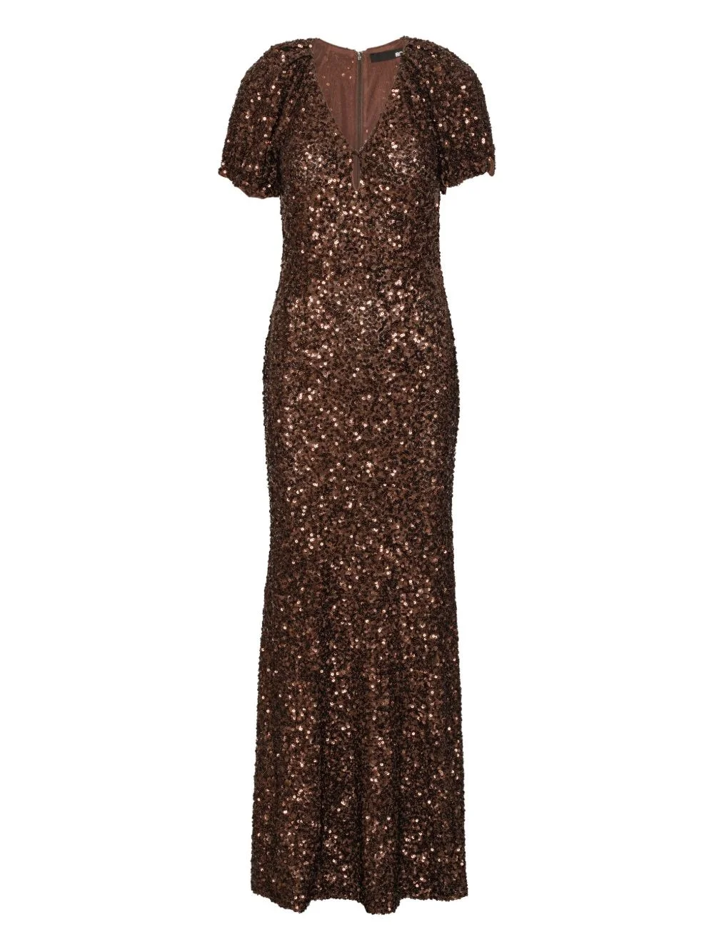 sequins V-neck maxi dress Highlights - Brown - Sequins - V-neck - Short sleeves - Maxi length - Zip fastening Imported Composition Body: Recycled Polyester 99%, Elastane 1% Lining: Recycled Polyester 95%, Elastane 5% Washing instructions Read Manufacturer Guidelines