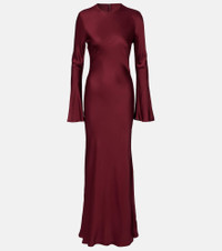 Fill the gaps in your going-out wardrobe with unique and glamorous styles from Rotate. The Signe gown is crafted from fluid satin, and the silhouette boasts elegant draped sleeves and a floor-length skirt. Product Details - Material: 100% viscose - Care instructions: hand wash - Made in China - Designer color name: Zinfandel - Item color: burgundy - Closure: zipped back - Item number: P01105599 Size & Fit - True to size - Cinched waist - Non-stretchy fabric - The model seen in the picture is 178cm-5'10" and wearing a size DE 34