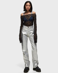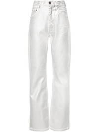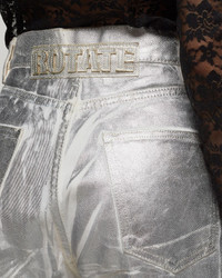 The coated denim pants by ROTATE Birger Christensen are made from cotton and have a silver-colored coating. The jeans feature a classic five-pocket style and a straight cut. - Five-pocket design - Belt loops This item is partly made of certified, recycled and sustainable materials, reducing the global amount of waste and conserving primary raw materials. Discover a wide range of sustainable items now at BSTN! Article Number: 1117802667 Gender: Women Color: WHITE ALYSSUM Material: 100% Cotton