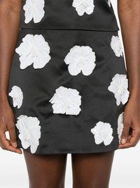 floral-appliqué satin mini skirt