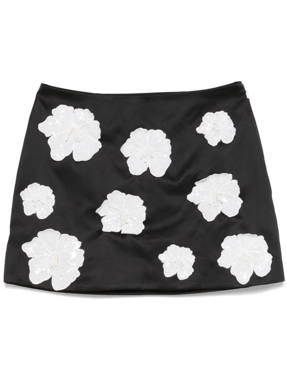 floral-applique satin mini skirt Highlights - Black - Satin finish - Sequin embellishment - Floral applique - Concealed side zip fastening - Full lining - A-line - Straight hem - Thigh-length Imported Composition Lining: Viscose 97%, Elastane 3% Outer: Polyester 100% SIZE & FIT Model measurements Height 5 ft 10 in(1.78 m) Bust/Chest 31.49 in(80 cm) Hips 37 in(94 cm) Waist 23.62 in(60 cm) FittingInformation This mini-length skirt is intended to be worn just below the waist Made from a midweight fabric