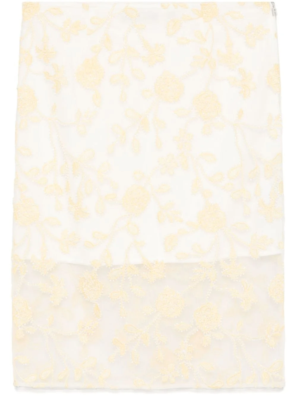 floral-beaded pencil skirt Highlights - Jasmine yellow - Concealed side zip fastening - Branded zip puller - Mesh design - Full lining Imported Composition Lining: Viscose 97%, Elastane 3% Outer: Recycled Polyester 100% SIZE & FIT Model measurements Height 5 ft 9 in(1.76 m) Bust/Chest 31.1 in(79 cm) Hips 36.61 in(93 cm) Waist 24.8 in(63 cm) FittingInformation This midi-length skirt is intended to be worn low on the hips Made from a midweight fabric