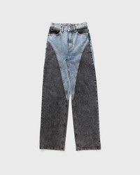 The straight patchwork jeans from ROTATE Birger Christensen embody a timeless style. They have been crafted with great attention to detail and feature five pockets accentuated with rivets. The patchwork contrast of blue and dark grey denim adds a modern twist, while the original denim thread color and logo button complete the casual design. - 5-pocket style - Button and zipper fastening - Belt loops Article Number: 1128191603 Gender: Women Color: MEDIUM BLUE DENIM Material: 100% Cotton