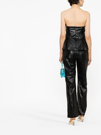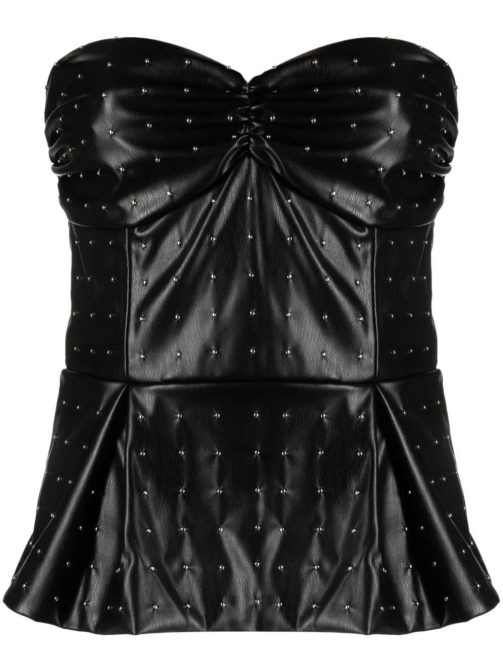 strapless peplum top Constructed in a strapless silhouette, this vinyl-finish garment from ROTATE BIRGER CHRISTENSEN is imagined in black for SS23. Highlights - Strapless peplum top from rotate featuring black, strapless and peplum hem. Imported Composition Lining: Viscose 97%, Spandex/Elastane 3% Outer: Recycled Polyester 100%, Polyurethane 100% SIZE & FIT Model measurements Height 5 ft 10 in(1.78 m) Bust/Chest 30.7 in(78 cm) Hips 34.64 in(88 cm) Waist 23.22 in(59 cm) Measurement HIPS 34.64 in(88 cm) LENGTH 16.14 in(41 cm) FittingInformation This piece fits true to size. We recommend you get your regular size Cut for a slim fit Made with a mid-weight fabric