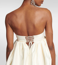 Made from twill, this strapless minidress from Rotate Birger Christensen encapsulates the brand’s elegant contemporary aesthetic beautifully. Product Details - Closure: self-ties - Made in China - Material: 100% recycled polyester - Designer color name: Egret - Lining: 97% polyester, 3% elastane - Care instructions: dry clean - Item number: P00805271 Size & Fit - True to size - Low back - Strapless - Cinched waist - Non-stretchy fabric - The model seen in the picture is 178cm-5'10" and wearing a size DT 34