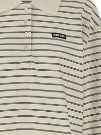 striped long-sleeve polo Highlights - Off-white - Striped - Classic collar - Button placket - Long sleeves - Ribbed cuffs Imported Composition Cotton 95%, Spandex/Elastane 5% Washing instructions Read Manufacturer Guidelines