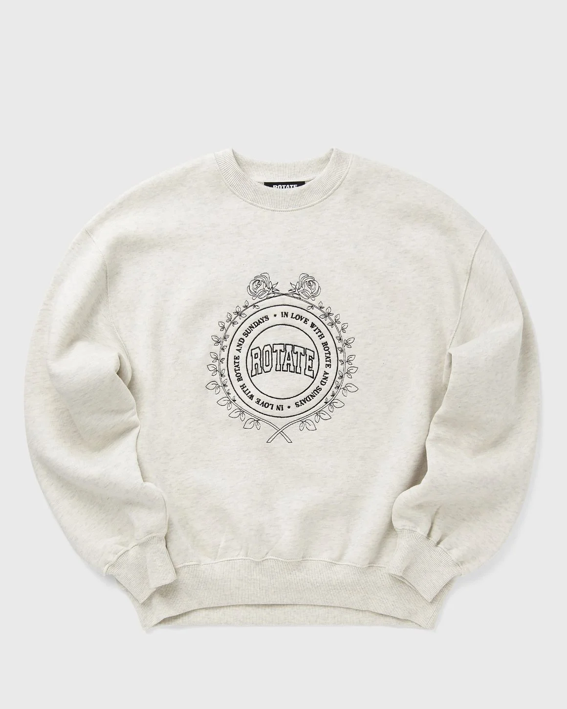 The Heavy Sweat Crewneck by ROTATE Birger Christensen combines urban minimalism with a touch of retro flair. The oversized cut with dropped shoulders creates a casual look, while the classic round neckline and ribbed cuffs and hem ensure a perfect fit. The eye-catching ROTATE logo with floral graphic on the front adds a modern accent. - Relaxed fit - Ribbed cuffs and hem - Round neckline This item is partly made of certified, recycled and sustainable materials, reducing the global amount of waste and conserving primary raw materials. Discover a wide range of sustainable items now at BSTN! Article Number: 1143813070 Gender: Women Color: WHITE MELANGE Material: 100% Cotton