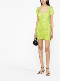 tie-dye ruched minidress ROTATE BIRGER CHRISTENSEN spotlights its high-spirited aesthetic in the design of this minidress. The ruched effect and plunging V-neck enhances the effect of the tonal green tie-dye pattern. Highlights - Love bird green - Recycled polyester blend - Stretch-design - Tie-dye pattern - Ruched detailing - Plunging v-neck - Short sleeves - Straight hem Imported Composition Outer: Recycled Polyester 95%, Elastane 5% Lining: Recycled Polyester 95%, Elastane 5% SIZE & FIT Model measurements Height 5 ft 10 in(1.77 m) Bust/Chest 32.67 in(83 cm) Hips 35.43 in(90 cm) Waist 23.62 in(60 cm)