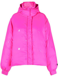 Tina logo-patch zip-up jacket Highlights - Pink glow - Recycled polyamide blend - Logo patch at the sleeve - Monogram print - Detachable hood - Front press-stud and zip fastening - Long sleeves - Elasticated cuffs - Straight hem Imported Composition Outer: Recycled Polyamide 100% Lining: Recycled Polyester 100% SIZE & FIT Model measurements Height 5 ft 11 in(1.8 m) Bust/Chest 31.49 in(80 cm) Hips 36.22 in(92 cm) Waist 25.59 in(65 cm) FittingInformation This piece fits true to size. We recommend you get your regular size Cut for a loose fit Made with a mid-weight non-stretch fabric