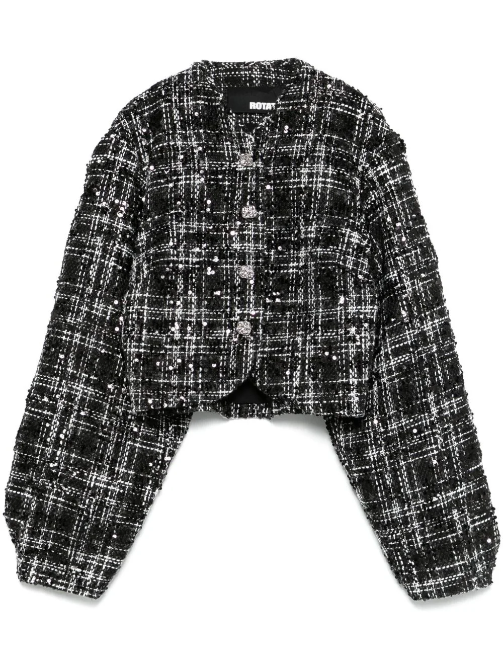 boucle jacket Highlights - Black - Concealed front press-stud fastening - Sequin embellishment - Long puff sleeves - Cropped Imported Composition Lining: Polyester 92%, Elastane 8% Outer: Recycled Polyester 100% SIZE & FIT Model measurements Height 5 ft 10 in(1.78 m) Bust/Chest 33.85 in(86 cm) Hips 36.61 in(93 cm) Waist 26.77 in(68 cm) Measurement SLEEVE LENGTH 24.01 in(61 cm) LENGTH 18.11 in(46 cm) FittingInformation Designed for a slim fit that sits just away from the body offering a close yet comfortable fit Made from a midweight fabric Washing instructions Dry Clean Only