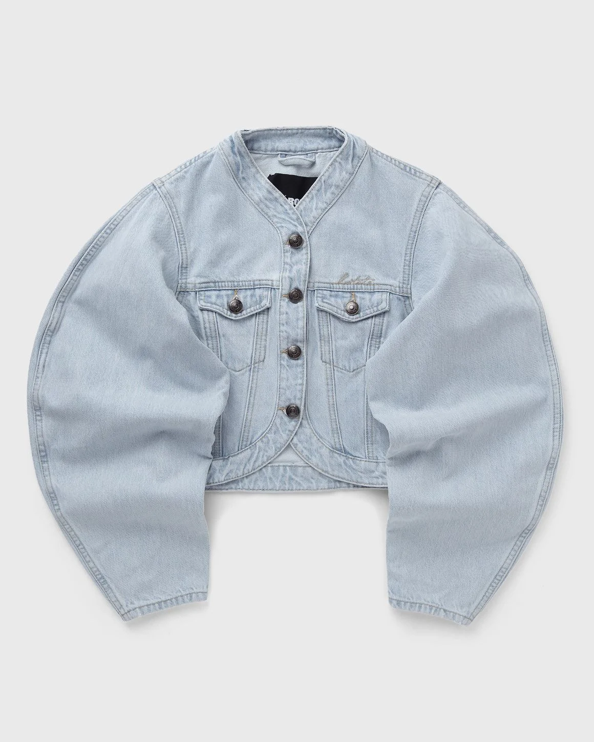 The Round Sleeve Denim Jacket by ROTATE Birger Christensen has a cropped fit and unique round sleeves for a modern silhouette. The jacket with a classic button fastening and light blue denim finish can be combined in a variety of ways. - Button placket - Buttoned chest pockets - Cropped fit with curved hemline Article Number: 1138261468 Gender: Women Color: LIGHT BLUE DENIM Material: 100% Cotton