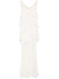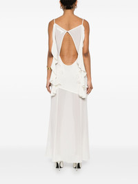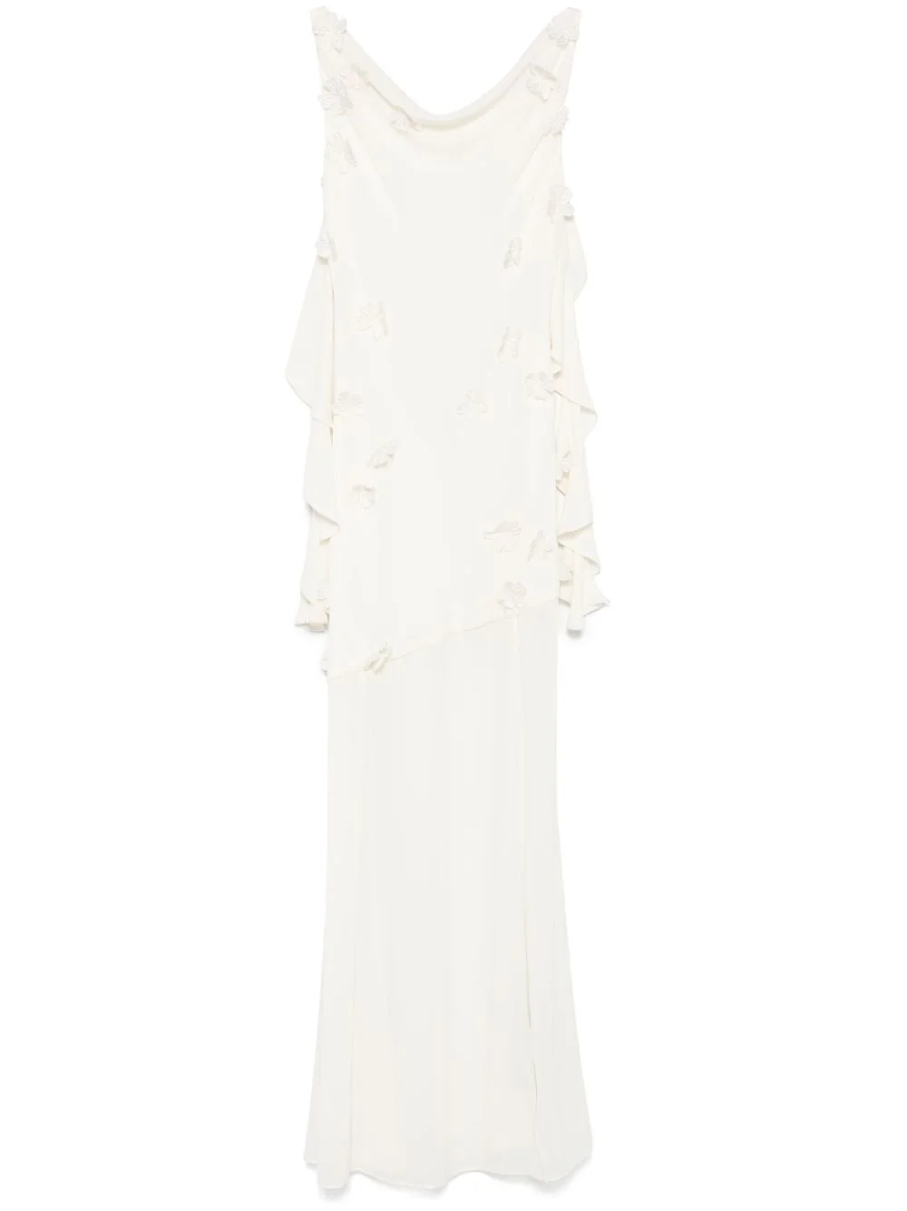 waterfall maxi dress Highlights - Light beige - Single rear button fastening - Open back - Draped detailing - Floral applique Imported Composition Lining: Polyester 100% Outer: Recycled Polyester 55%, Polyester 45% SIZE & FIT Model measurements Height 5 ft 10 in(1.78 m) Bust/Chest 32.67 in(83 cm) Hips 35.43 in(90 cm) Waist 23.22 in(59 cm) FittingInformation Designed for a slim fit that sits just away from the body offering a close yet comfortable fit Made from a lightweight non-stretch fabric, this piece offers minimal elasticity when worn