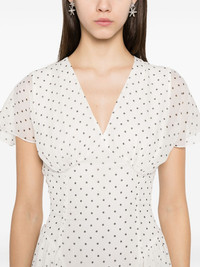 V-neck maxi dress Highlights - White - Concealed rear hook and zip fastening - Full lining - Polka dot print - Short sleeves Imported Composition Lining: Recycled Polyester 92%, Elastane 8% Outer: Recycled Polyester 100% SIZE & FIT Model measurements Height 5 ft 10 in(1.78 m) Bust/Chest 33.85 in(86 cm) Hips 36.61 in(93 cm) Waist 26.77 in(68 cm) FittingInformation Designed for a close fit at the chest and waist with a loose fit at the hip Made from a midweight fabric