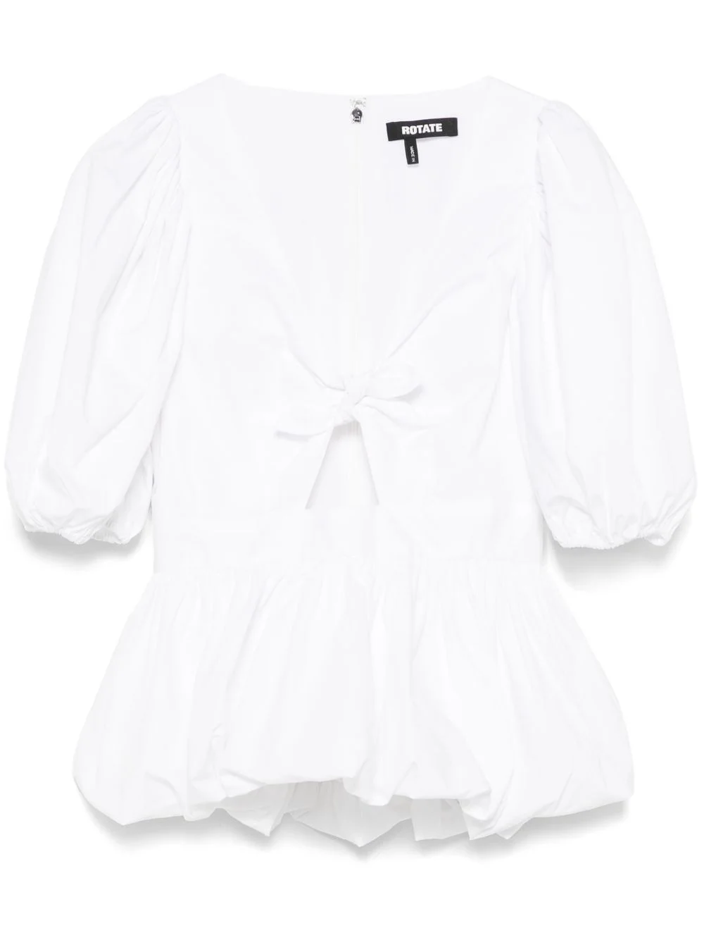 puff-sleeve bubble top Highlights - White - Concealed rear hook and zip fastening - Front tie fastening - Elasticated cuffs - Cut-out detailing Imported Composition Outer: Organic Cotton 97%, Spandex/Elastane 3% Lining: Polyester 90%, Spandex/Elastane 10%