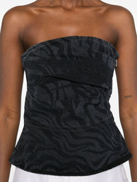 zebra-print denim top Highlights - Black - Recycled cotton - Denim - Zebra print - Side zip fastening - Strapless - Gathered detailing - Straight hem Imported Composition Recycled Cotton 100% SIZE & FIT Model measurements Height 5 ft 10 in(1.78 m) Bust/Chest 31.49 in(80 cm) Hips 37 in(94 cm) Waist 23.62 in(60 cm) FittingInformation Designed for a close fit throughout Sturdy and hard-wearing, this denim piece offers no stretch