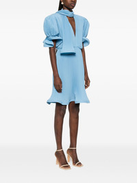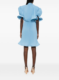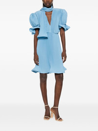 pleated puffy-sleeve midi dress Highlights - Blue - Scarf - V-neck - Short sleeves - Pleated design - Ruffled trims Made in Italy Composition Polyester 100% Washing instructions Dry Clean Only