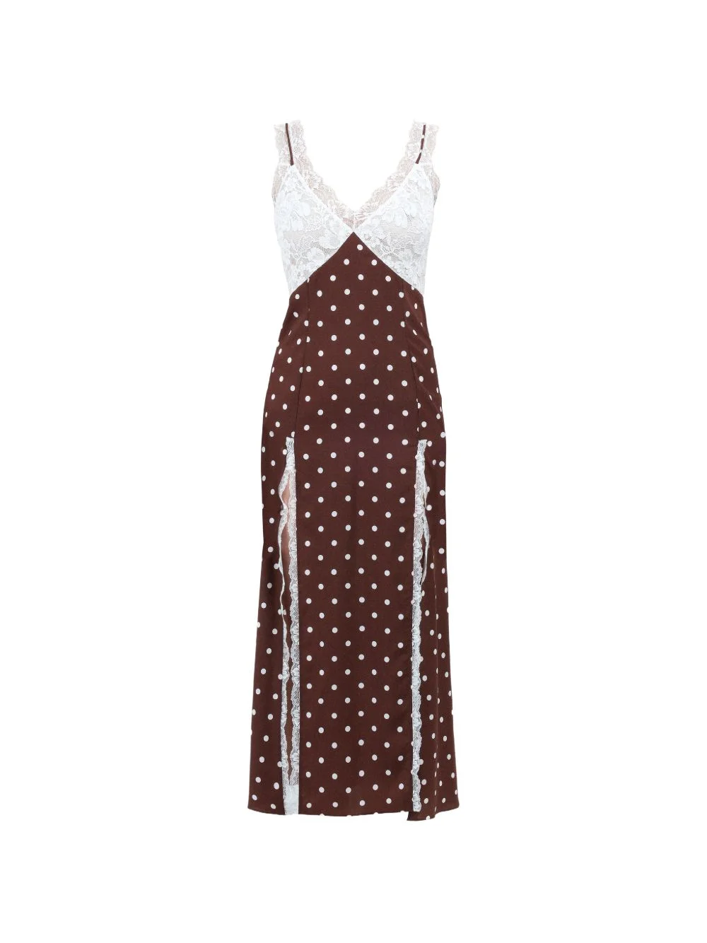 polka-dots lace maxi dress Highlights - Brown - Polka dot pattern - Lace detail - V-neck - Straps - Slit detail Made in Italy Composition Outer: Polyester 100% Washing instructions Specialist Cleaning