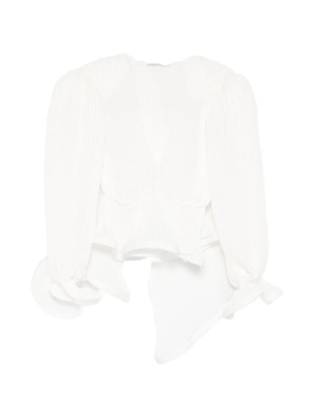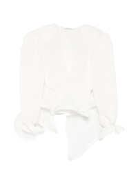 V-neck blouse Highlights - White - Pleats - V-neck - Puffy long sleeves - Ruffled cuffs - Cinched waist Made in Italy Composition Polyester 100% Washing instructions Dry Clean Only